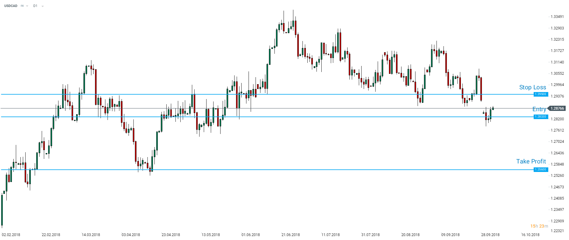 Banka doporučuje short pozici s následujícími hladinami: