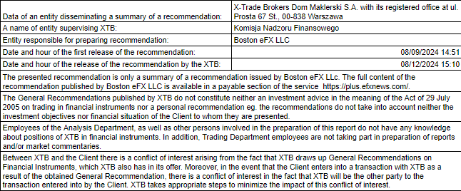 Rozdílové smlouvy jsou komplexní nástroje a v důsledku použití finanční páky jsou spojeny s vysokým rizikem rychlého vzniku finanční ztráty. U 71 % účtů retailových investorů došlo při obchodování s rozdílovými smlouvami u tohoto poskytovatele ke vzniku ztráty. Měli byste zvážit, zda rozumíte tomu, jak rozdílové smlouvy fungují, a zda si můžete dovolit vysoké riziko ztráty svých finančních prostředků. Investování je rizikové. Investujte zodpovědně. Tento materiál je marketingovou komunikací ve smyslu čl. 24 odst. 3 směrnice Evropského parlamentu a Rady 2014/65/EU ze dne 15. května 2014 o trzích finančních nástrojů, kterou se mění směrnice 2002/92/ES a směrnice 2011/61/EU (MiFID II). Marketingová komunikace není investiční doporučení ani informace doporučující či navrhující investiční strategii ve smyslu nařízení Evropského parlamentu a Rady (EU) č. 596/2014 ze dne 16. dubna 2014 o zneužívání trhu (nařízení o zneužívání trhu) a o zrušení směrnice Evropského parlamentu a Rady 2003/6/ES a směrnic Komise 2003/124/ES, 2003/125/ES a 2004/72/ES a nařízení Komise v přenesené pravomoci (EU) 2016/958 ze dne 9. března 2016, kterým se doplňuje nařízení Evropského parlamentu a Rady (EU) č. 596/2014, pokud jde o regulační technické normy pro technická ujednání pro objektivní předkládání investičních doporučení nebo jiných informací doporučujících nebo navrhujících investiční strategie a pro zveřejnění konkrétních zájmů nebo náznaků střetu zájmů nebo jakékoli jiné rady, a to i v oblasti investičního poradenství, ve smyslu zákona č. 256/2004 Sb., o podnikání na kapitálovém trhu. Marketingová komunikace je připravena s nejvyšší pečlivostí, objektivitou, prezentuje fakta známé autorovi k datu přípravy a neobsahuje žádné hodnotící prvky. Marketingová komunikace je připravena bez zohlednění potřeb klienta, jeho individuální finanční situace a nijak nepředstavuje investiční strategii. Marketingová komunikace nepředstavuje nabídku k prodeji, nabídku, předplatné, výzvu na nákup, reklamu nebo propagaci jakýchkoliv finančních nástrojů. Společnost XTB S.A., organizační složka nenese odpovědnost za jakékoli jednání nebo opomenutí klienta, zejména za získání nebo zcizení finančních nástrojů, na základě informací obsažených v této marketingové komunikaci. V případě, že marketingová komunikace obsahuje jakékoli informace o jakýchkoli výsledcích týkajících se finančních nástrojů v nich uvedených, nepředstavují žádnou záruku ani předpověď ohledně budoucích výsledků. Minulá výkonnost nemusí nutně vypovídat o budoucích výsledcích a každá osoba jednající na základě těchto informací tak činí zcela na vlastní riziko.