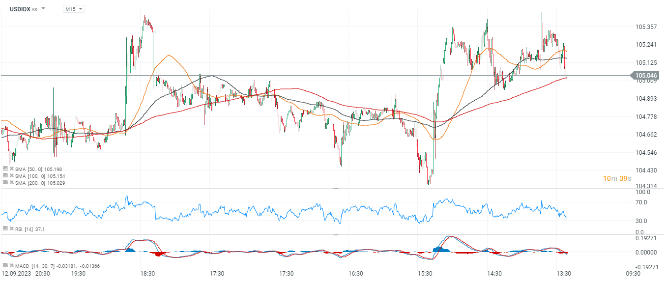 USDIDX testuje krátkodobou úroveň supportu na 105,02 bodu (SMA200).