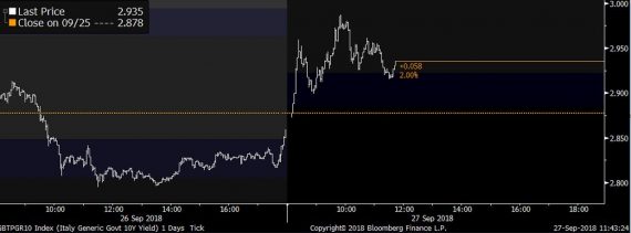 Euro tradične menové a úverové štatistiky neriešilo. Dnes je však pod tlakom. Dôvodom je vyhlásenie talianskeho podpredsedu vlády a šéfa Ligy Salviniho, podľa ktorého bude deficit v pripravovanom rozpočte nad dvoma percentami. To opäť rozvírilo obavu o dlhodobú udržateľnosť talianskych verejných financií a poslalo výnosy z desaťročných talianskych dlhopisov bližšie k trom percentám.