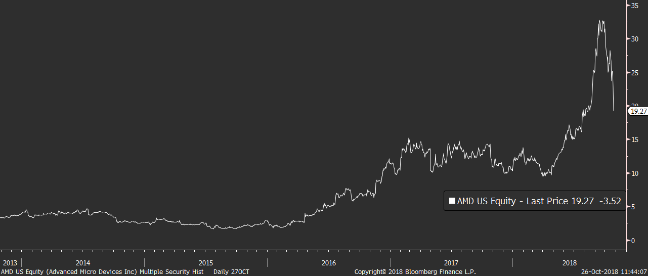 Z nejméně úspěšných společností nás v minulém týdnu zaujala hlavně AMD. Nadšení okolo technologického náskoku před Intelem poslalo letos akcie příliš vysoko a ty nyní zahajují korekci. Ta byla navíc umocněna zveřejněním výsledků za 3Q, kdy společnost zklamala nižším tržbami, což poslalo jejich cenu za posledních pět obchodních seancí o čtvrtinu níže. I tak ale zůstává jejich cena více než 80 % nad úrovní ze začátku roku. V srpnu a září si holt býci na AMD ukousli až příliš velké sousto.