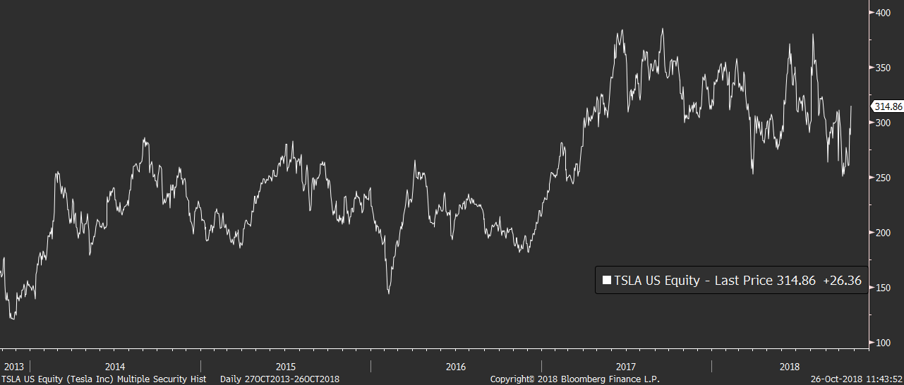 Za pozornost podle nás ale stály i akcie společnosti Tesla, která sice není členem S&P500, i tak je ale akcií, o které se v těchto dnech mluvilo snad nejvíce. Elon Musk svůj slib ziskového čtvrtletí a pozitivního cash-flow dodržel a s přispěním velmi silného růstu tržeb (128 % y/y) se akcie TSLA vyhouply v uplynulých pěti dnech o 19 % výše.