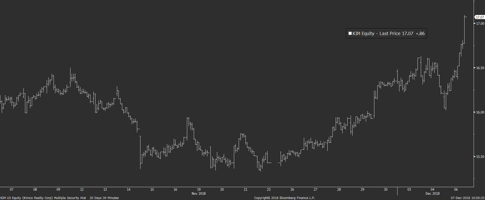 Ani jedna z nejúspěšnějších akcií tentokrát nedokázala pokořit desetiprocentní hranici. Nejvíce se jí ale přiblížily akcie společnosti Kimco reality (KIM), které od minulého páku vystoupaly o velmi pěkných 7,2 %. KIM je klasickou REIT akcií, tedy real-estate trustem orientujícím se na pronájem nemovitostí (v případě KMI se jedná hlavně o obchodní centra). KMI za sebou díky růstu úrokových sazeb nemá úspěšný rok, ale právě současný návrat 10letých výnosů pod 2,9 % v minulých dnech dokázal akcii pomoci.