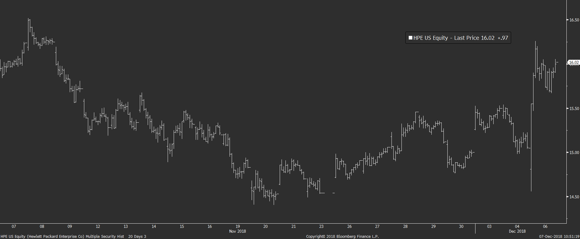 Z dalších známějších společností se pak na předních místech umístily jména jako Hewlett Packard (HPE), nebo Twitter (TWTR), které rostly o 5,9 % a 5,3 %. HPE vděčí za svůj růst hlavně včerejší seanci, kdy akcie reagovaly na lepší než očekávané výsledky za 3Q, které byly taženy vyšší poptávkou v segmentu datových center.