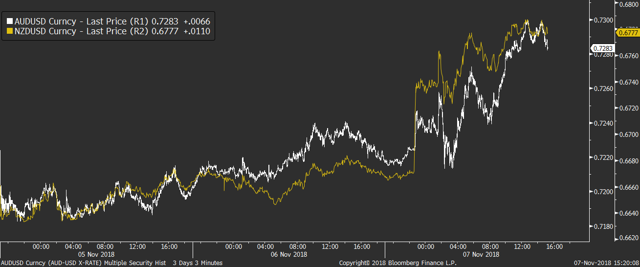 Dolar je přitom pod tlakem i na páru s ostatními měnami, z nichž se nejvíce daří AUD a NZD. Oběma měnám pomáhá optimismus, týkající se možného dosažení obchodní dohody mezi USA a Čínou, přičemž NZD dostal velký růstový impuls ještě během včerejšího večera po zveřejnění novozélandských výsledků z pracovního trhu. NZD dnes večer přitom čeká ještě zasedání RBNZ, takže o volatilitu na této měně rozhodně nouze být nemusí.
