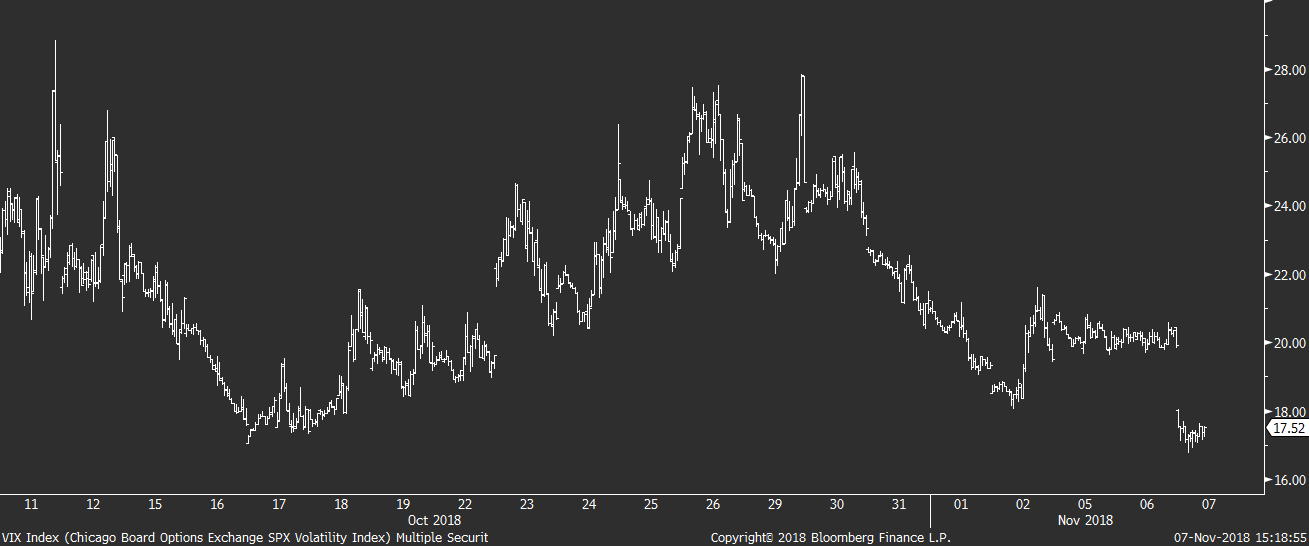 Faktem je, že americké futures v čase zveřejňování výsledků rostly jen o pár desetin procenta a zdá se nám proto pravděpodobnější, že spíše než o nadšení z výsledku voleb jde dnes jednoduše jen o pokračování růstového trendu z posledních několika seancí. Pomáhá k tomu hlavně postupný pád rizikových přirážek, který je sám o sobě dobrým důvodem k tomu, aby cena akcií a dalších rizikových aktiv i nadále mírně rostla.