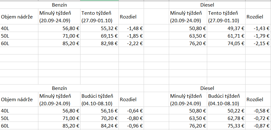 Analytik spoločnosti X-Trade Brokers, Lukáš Lipovský, na základe vývoja cien PHM v Rotterdame očakáva, že priemerné ceny benzínu a dieslu na Slovensku by mali v nasledujúcich dvoch až troch týždňoch zaznamenať nárast do dvoch centov za liter oproti priemerným cenám z predchádzajúceho týždňa. Priemerné ceny benzínu zaznamenali na Slovensku behom minulého týždňa nárast o 0,1 centu za liter, pričom priemerné ceny dieslu sa oproti priemerným cenám z predchádzajúceho týždňa nezmenili.
