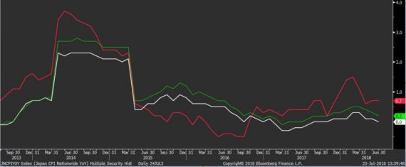 Z môjho pohľadu sú tieto špekulácie mimo. BoJ sa v rámci „kvalitatívneho kvantitatívneho uvoľňovala“ zaviazala držať infláciu určitý čas nad dvojpercentným cieľom, aby vymazala aspoň časť z predošlého manka. Aktuálne je však celková inflácia na úrovni 0,7%. A aj to len vďaka palivám (teda rope), keď ju očistíme o ceny palív a ceny jedla, tak je na úrovni 0%, resp. 0,2% keď sa očisťujeme len o čerstvé potraviny. Od dvojpercentného cieľa je teda mimoriadne vzdialená a ešte minimálne niekoľko kvartálov aj ostane. Keď teda BoJ niečo podprahovo chystá, tak by to skôr malo byť uvoľnenie a nie utiahnutie politiky.