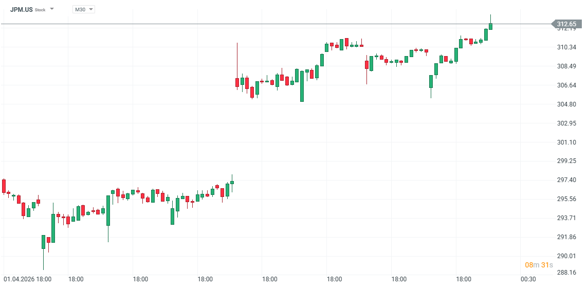 JPMorgan Chase reportoval v úterý ještě přesvědčivěji. Čistý zisk dosáhl 16,5 miliardy dolarů, tržby 50,5 miliardy dolarů, oboje nad odhady. Divize trhů vykázala rekordní tržby 11,6 miliardy dolarů. CEO Jamie Dimon konstatoval, že americká ekonomika zůstává odolná, varoval však před rostoucími riziky - geopolitickým napětím, volatilitou energií a vysokými globálními deficity. Akcie se před otevřením trhů pohybují na úrovni 312 USD.