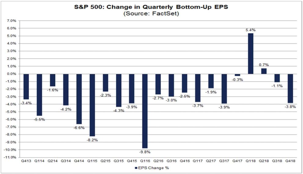 Očakávania sa nevyhli negatívnym revíziám. Jednak kvôli horšej nálade na trhoch, horším ekonomickým dátam a niektoré firmy svoj výhľad zhoršili sami (napr. Apple). Pokles o 3,8% v minulom kvartáli však nie je ničím neštandardným, a pokiaľ neberieme do úvahy predošlé štyri kvartály, tak je to priemerný vývoj.