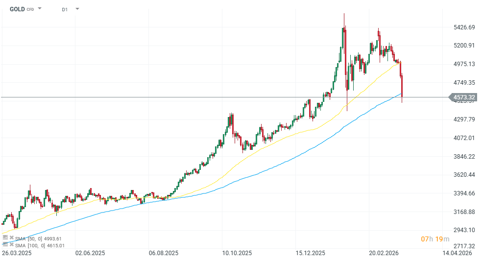 Ceny zlata ve čtvrtek prudce klesají o více než 5 %. Investoři se stahují z drahých kovů, protože rostoucí inflační očekávání snižují šance na rychlé snížení úrokových sazeb ze strany americké centrální banky. Vyšší úrokové sazby a posilující dolar působí negativně na drahé kovy – zlato se propadá pod 4 600 USD za unci, stříbro ztrácí přes 10 % a obchoduje se kolem 70 USD za unci.