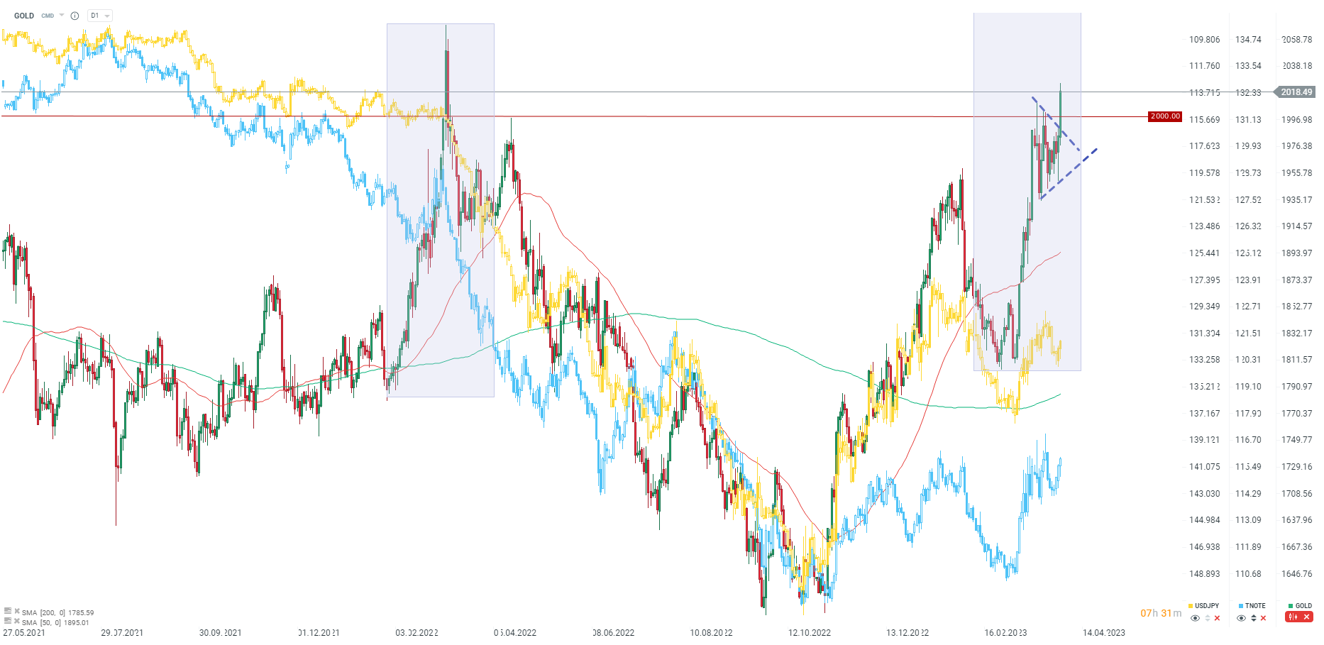 Slabší makrodata vyvíjejí tlak na USD a my jsme svědky výrazného poklesu výnosů dluhopisů. Konečná hodnota JOLTS byla poprvé od května 2021 pod úrovní 10 milionů, což signalizuje oslabování amerického trhu práce. Zlato tváří v tvář obavám z recese získává.