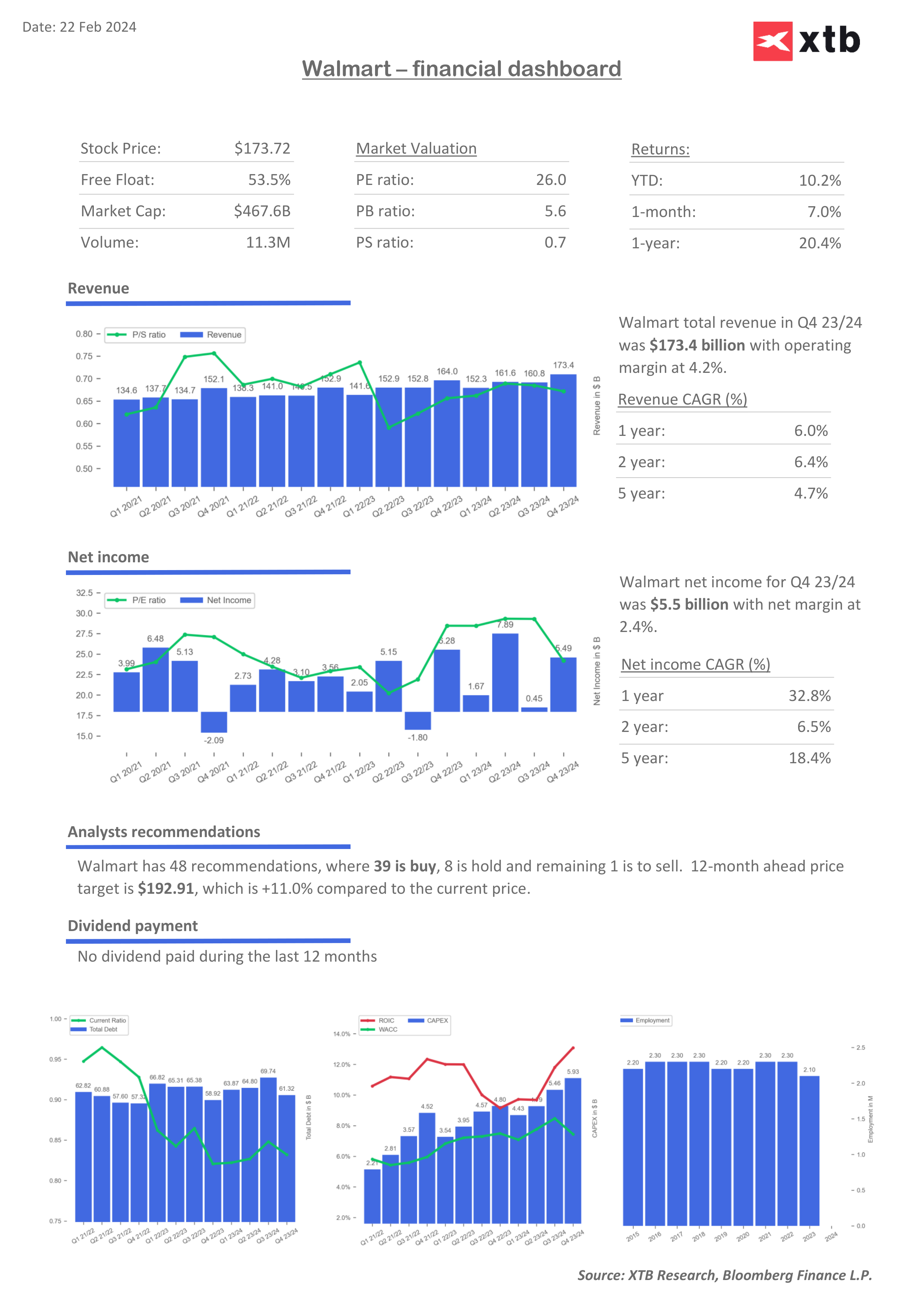 Finanzielles Dashboard für Walmart (WMT.US). Quelle: Bloomberg Finance LP, XTB