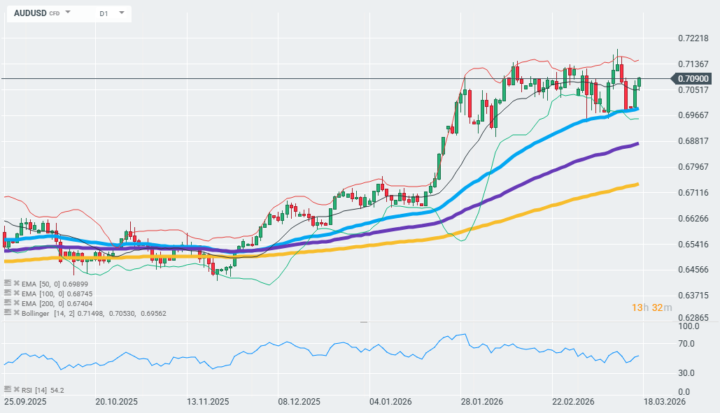 Aus Sicht der Forex Analyse bleibt der australische Dollar durch das Zinsgefälle gegenüber dem US-Dollar unterstützt. Höhere Zinsen erhöhen die Attraktivität von AUD-basierten Anlagen und ziehen Kapitalströme an.