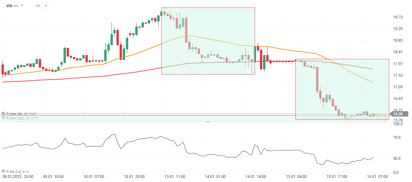 Tatsache ist jedoch, dass die Inflationszahlen tatsächlich recht gemischt ausfielen und die Inflation in den kommenden Monaten weiterhin ein „Thema“ auf dem Markt sein wird. Auch Trump birgt noch eine ganze Reihe von Unbekannten, was die ersten Monate seiner Präsidentschaft für die Märkte möglicherweise etwas stressig machen wird. Daher ist ein möglicher Anstieg des VIX von seinem derzeitigen extrem überverkauften Niveau aus weiterhin möglich. Der Index hat die Nähe von 16 erreicht, wo wir in den letzten Wochen eine Konsolidierung gesehen haben und von wo aus es zu deutlichen Aufwärtsreaktionen bei den Preisen gekommen ist.