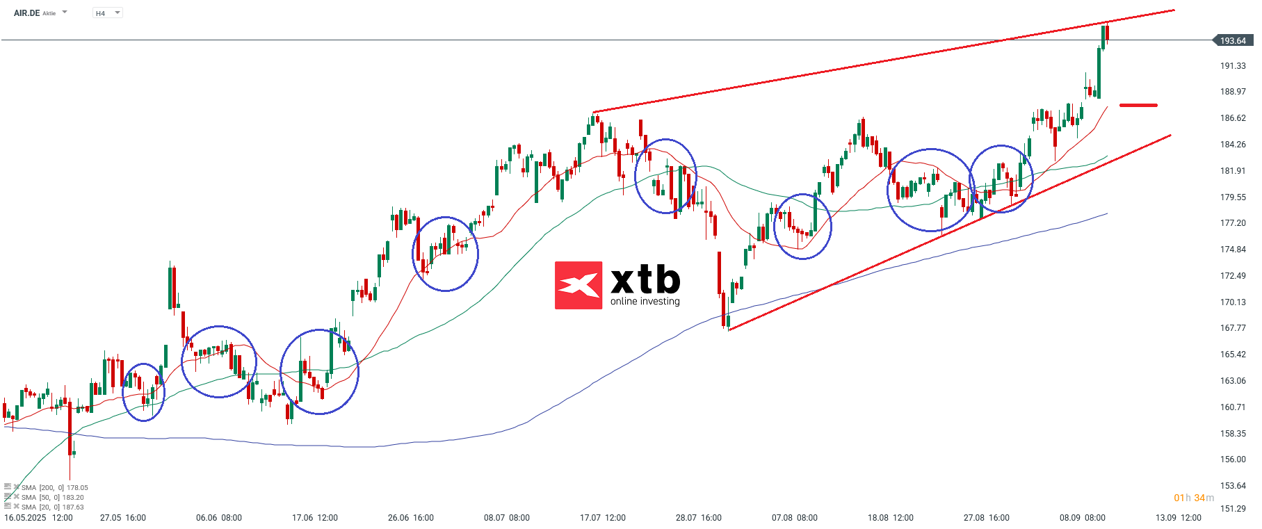Quelle: xStation5 von XTB, aufgenommen am 12.09.2025. Zeithistorie gemäß der Information direkt im Chart. Vergangene Ergebnisse sind kein Indikator für zukünftige Performance. Das Handelsinstrument notiert in EUR. Mögliche Währungsschwankungen können sich auf die Rendite auswirken.