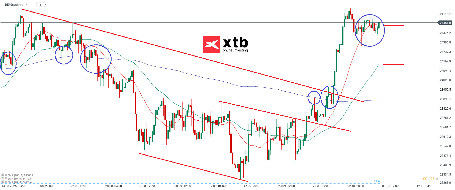 Quelle: xStation5 von XTB, aufgenommen am 08.10.2025. Zeithistorie gemäß der Information direkt im Chart. Vergangene Ergebnisse sind kein Indikator für zukünftige Performance. Das Handelsinstrument notiert in Punkten. Mögliche Währungsschwankungen können sich auf die Rendite auswirken.
