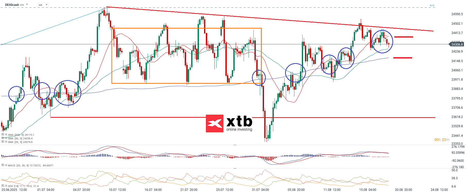 Quelle: xStation5 von XTB, aufgenommen am 20.08.2025. Zeithistorie gemäß der Information direkt im Chart. Vergangene Ergebnisse sind kein Indikator für zukünftige Performance. Das Handelsinstrument notiert in EUR. Mögliche Währungsschwankungen können sich auf die Rendite auswirken.