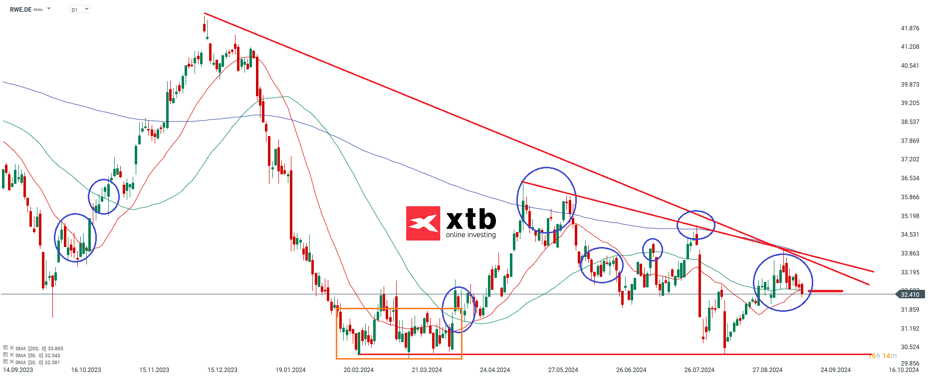 Die RWE Aktie (RWE) hat gestern um 1,33 Prozent nachgegeben und war damit die Aktie, die den größten Tagesverlust* ausgewiesen hat