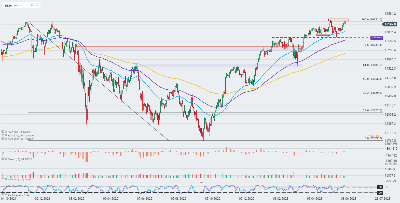 Die Aktien der Deutschen Bank (DBK.DE) verlieren während der heutigen Sitzung fast 1,5% aufgrund von Kommentaren von CFO Herrn James von Moltke, der prognostiziert, dass die Einnahmen aus dem Anleihenhandel im Vergleich zum außergewöhnlich erfolgreichen Vorjahresquartal um 15-20% zurückgehen werden, als sie um mehr als 30% stiegen. Es ist jedoch erwähnenswert, dass die Deutsche Bank nicht die einzige Bank ist, die einen Rückgang der Handelserlöse vorhersagt. JPMorgan (JPM.US) erwartet einen Rückgang der Erlöse aus Investmentbanking und Handel um 15% im Vergleich zum Vorjahr, und Goldman Sachs (GS.US) warnt vor einem Rückgang des Handels, der 25% überschreiten könnte.