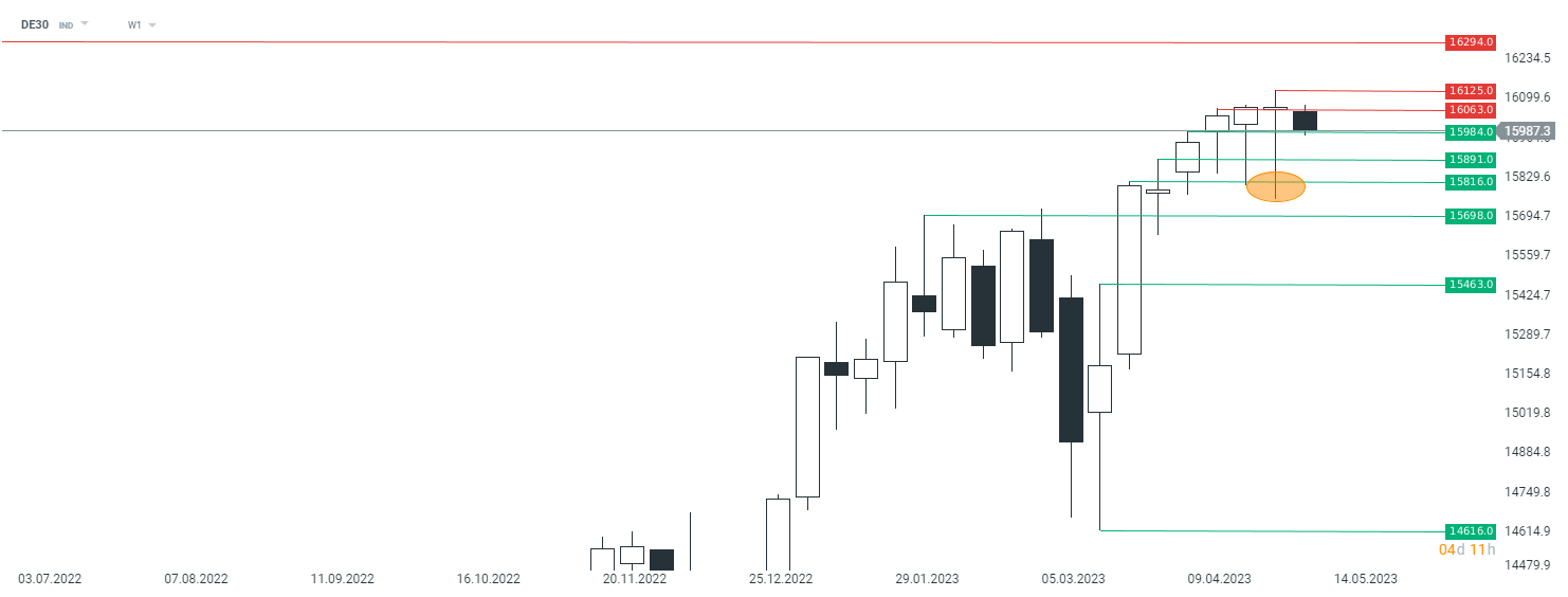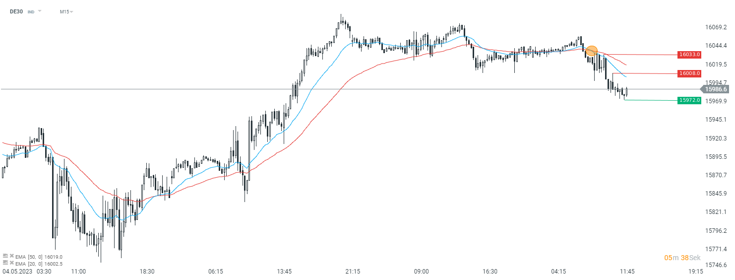 Der DAX-Future / DE30 korrigiert und fällt unter 16.000 Punkte.