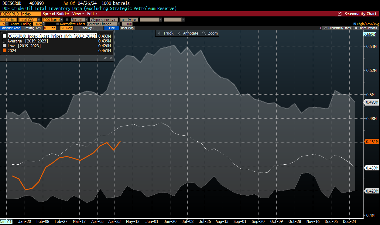 - Unterdessen beobachten wir einen Anstieg der Ölvorräte in den USA und eine Schwäche des Crack-Spreads, was auf Nachfrageprobleme hindeuten könnte.