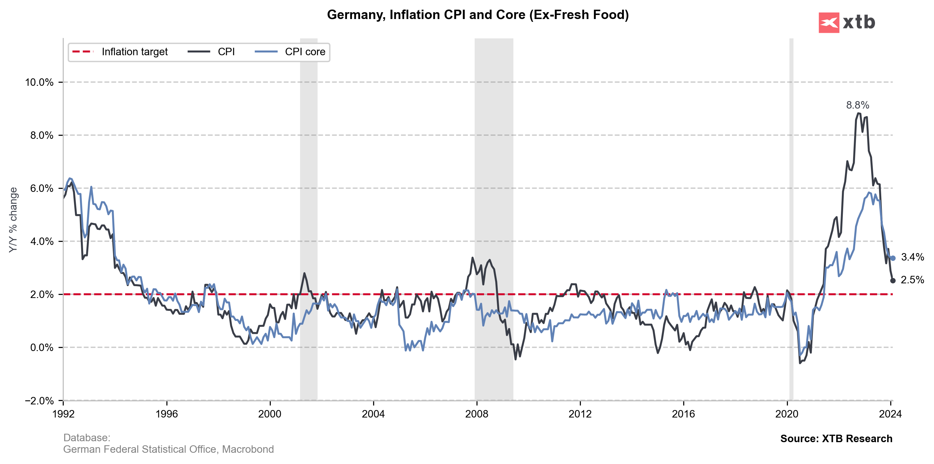 Der tatsächliche deutsche Wert stand im Gegensatz zu den französischen und spanischen Daten, da sich die VPI-Inflation in Deutschland im Februar stärker als erwartet verlangsamte. Auf Monatsbasis war der Preisanstieg langsamer als erwartet. Der EUR gab nach der Veröffentlichung nach, da die Daten als dovish angesehen werden können. Interessanterweise war auch am DAX / DE40-Markt ein leichter Rückgang zu beobachten.