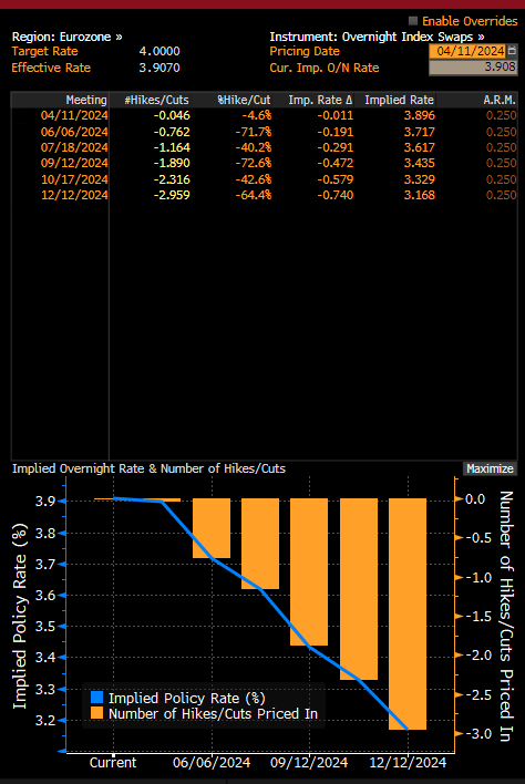 Erwartungen für Zinssenkungen in der Eurozone. Quelle: Bloomberg
