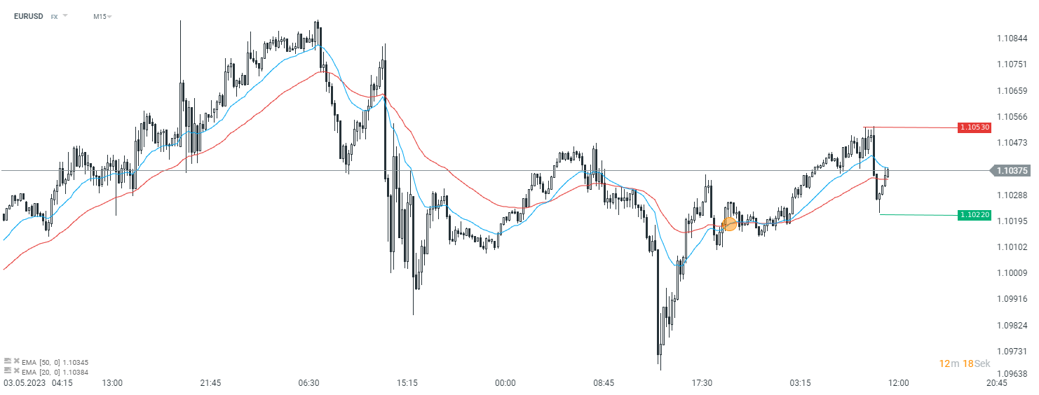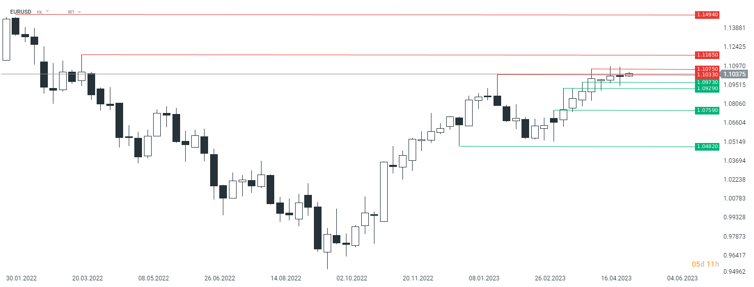 Das Währungspaar EURUSD testet zum vierten Mal das Hoch bei 1,1033.