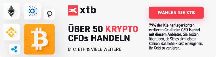 CFD sind komplexe Instrumente und beinhalten wegen der Hebelwirkung ein hohes Risiko, schnell Geld zu verlieren. 71% der Kleinanlegerkonten verlieren Geld beim CFD-Handel mit diesem Anbieter. Sie sollten überlegen, ob Sie verstehen, wie CFDs funktionieren und ob Sie es sich leisten können, das hohe Risiko einzugehen, Ihr Geld zu verlieren. Anlageerfolge sowie Gewinne aus der Vergangenheit garantieren keine Erfolge in der Zukunft. Inhalte, Newsletter und Mitteilungen von XTB stellen keine Anlageberatung dar. Die Mitteilungen sind als Werbemitteilung zu verstehen.