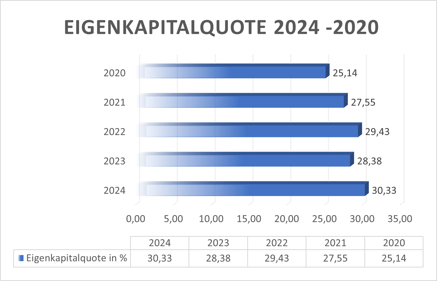 Die Eigenkapitalquote liegt 2024 bei 30 Prozent, fünf Prozentpunkte mehr als 2020.