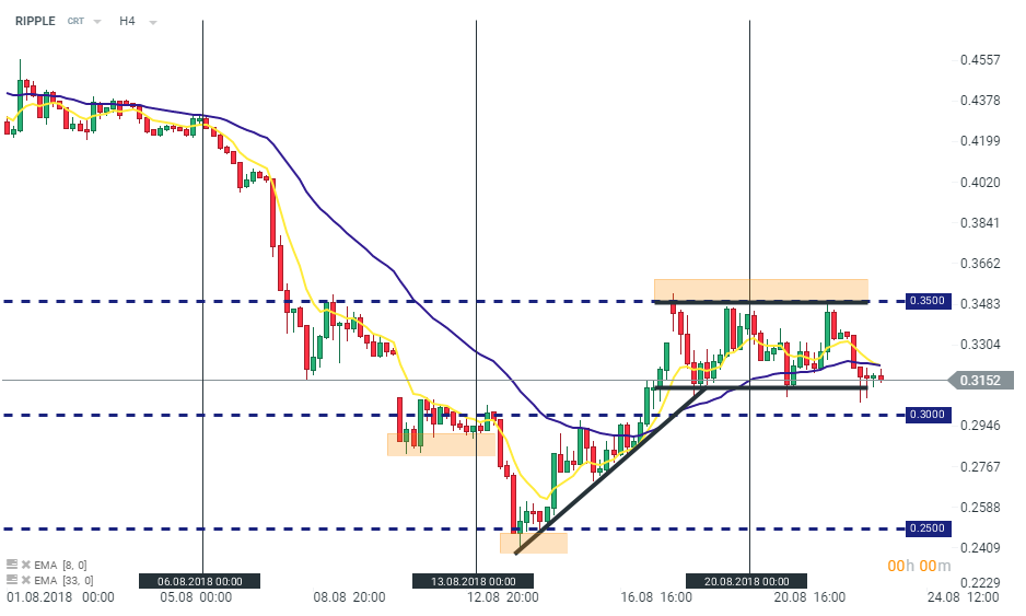 Am heutigen Morgen bewegt sich RIPPLE in der Nähe der unteren Grenze des Konsolidierungsbereichs zwischen 0,31 und 0,35 USD. RIPPLE hat, ähnlich wie Ether, den Donnerstag mit wenig Bewegung begonnen. Quelle: xStation 5