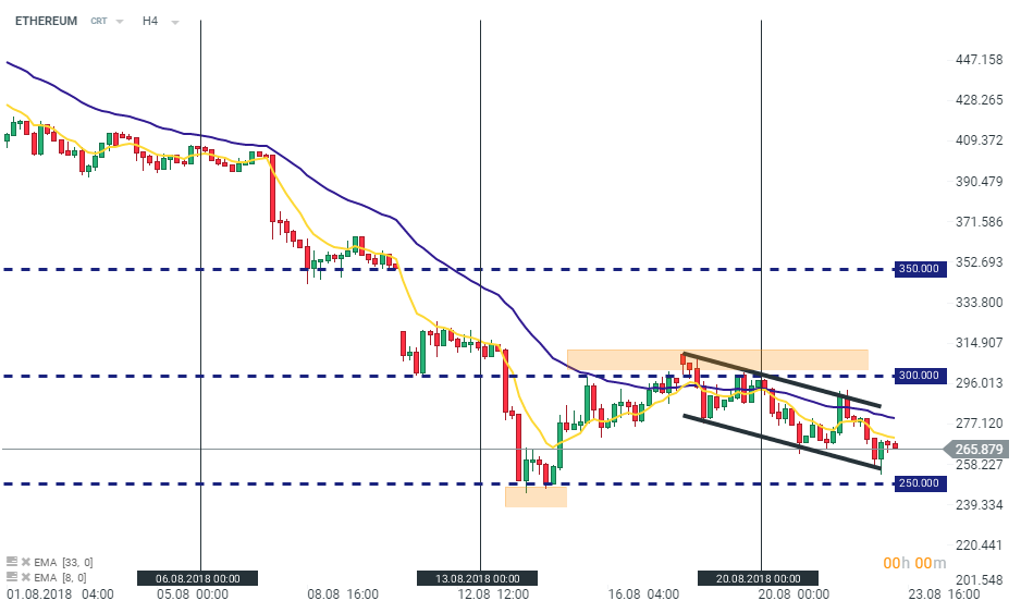 ETHEREUM hat den Tag eher ruhig begonnen. Mit Blick auf den H4-Chart können wir feststellen, dass die beiden letzten Kerzen kaum Bewegungen aufwiesen. Weder Bullen noch Bären scheinen sich hier durchsetzen zu können. Zum Zeitpunkt des Schreibens wird der Preis um die 270 USD gehandelt. Quelle: xStation 5