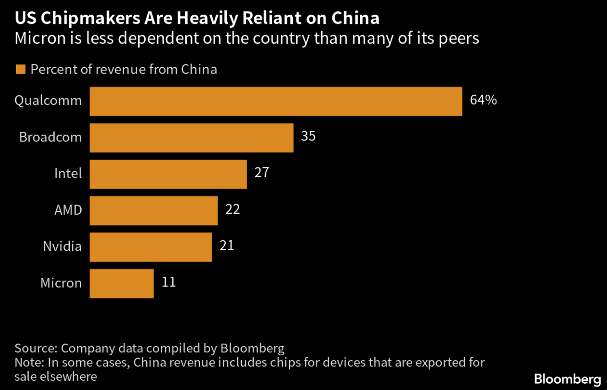 Micron selbst ist jedoch nicht so abhängig von China wie andere wichtige US-Unternehmen. Quelle: Bloomberg