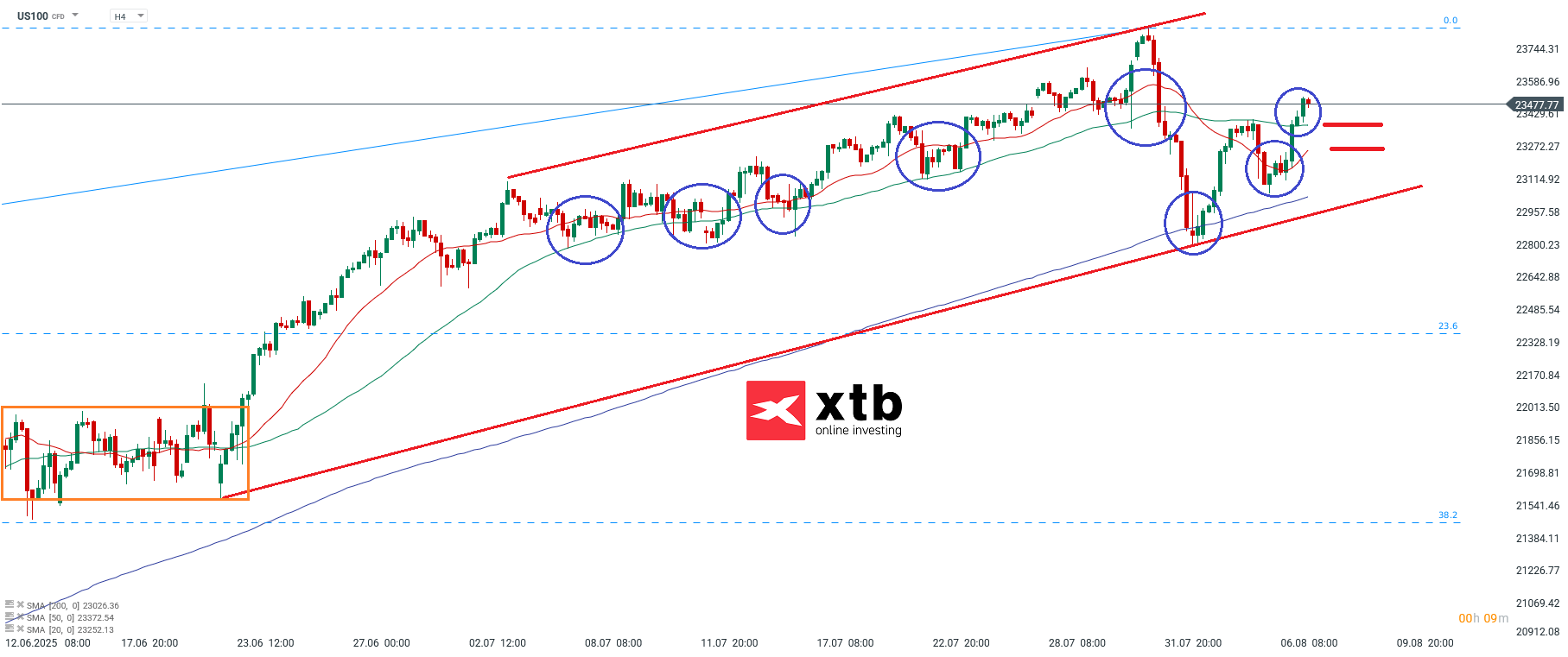 Quelle: xStation5 von XTB, aufgenommen am 07.08.2025. Zeithistorie gemäß der Information direkt im Chart. Vergangene Ergebnisse sind kein Indikator für zukünftige Performance. Das Handelsinstrument notiert in USD. Mögliche Währungsschwankungen können sich auf die Rendite auswirken.