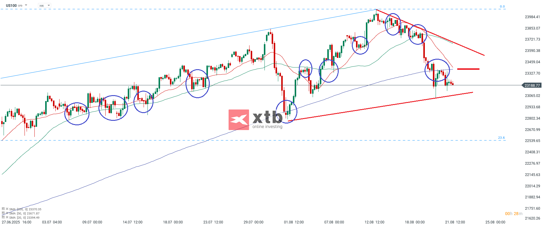 Quelle: xStation5 von XTB, aufgenommen am 22.08.2025. Zeithistorie gemäß der Information direkt im Chart. Vergangene Ergebnisse sind kein Indikator für zukünftige Performance. Das Handelsinstrument notiert in USD. Mögliche Währungsschwankungen können sich auf die Rendite auswirken.