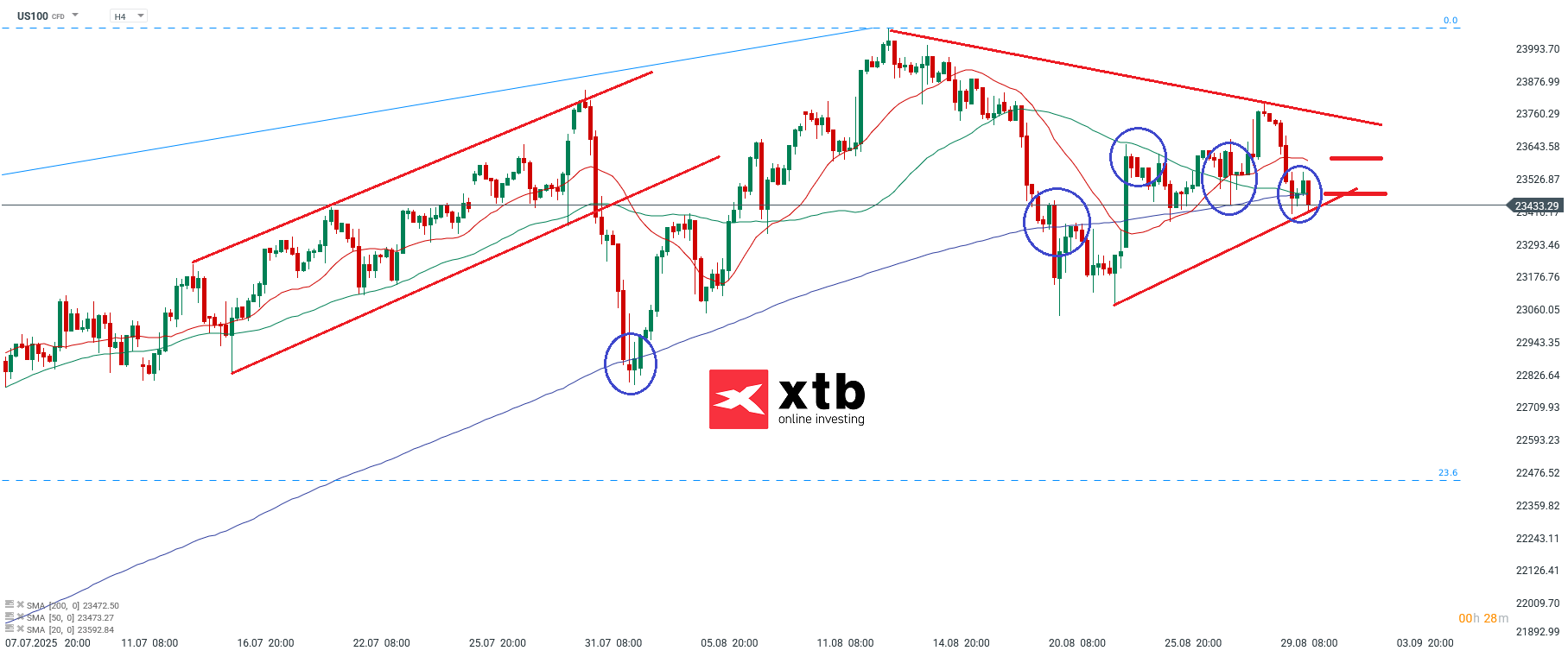 👉 Erwartete Tagesrange: 23.496 / 23.604 bis 23.227 / 23.113 Punkte