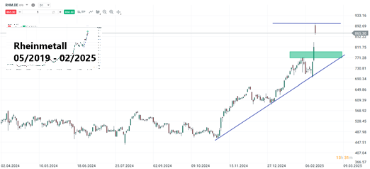 Die Rede des US-Vize-Präsidenten JD Vance auf der Münchener Sicherheitskonferenz sorgt auch am Frankfurter Börsenparkett für Aufruhe, die Aktie des Rüstungskonzerns Rheinmetall (Ticker: RHM) markierte auch m Montag neue Allzeithochs und handelte zunächst kurzzeitig über 900 Euro die Aktie.