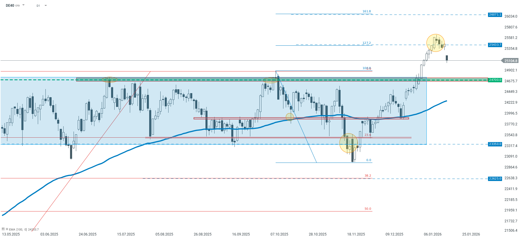 Quelle: xStation5 von XTB, aufgenommen am 19.01.2026. Zeithistorie gemäß der Information direkt im Chart. Vergangene Ergebnisse sind kein Indikator für zukünftige Performance. Das Handelsinstrument notiert in Punkten. Mögliche Währungsschwankungen können sich auf die Rendite auswirken.