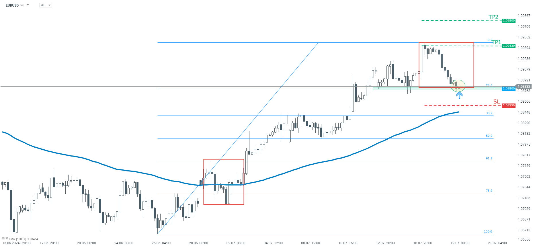 - Handeln: Eine mögliche Long-Position auf den EURUSD zum Marktpreis