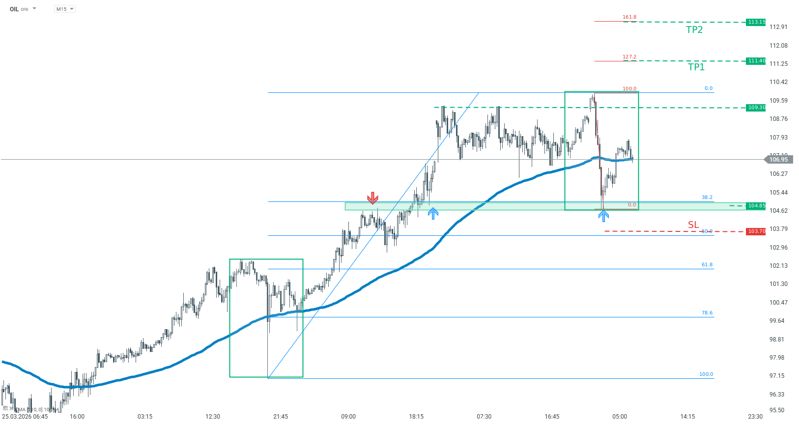 Diese Daytrading Tradingidee im Ölpreis basiert auf einer Kombination aus technischer Analyse, Trendbestätigung und Overbalance-Methodik. Solange sich der Kurs oberhalb der Unterstützung bei 104,85 hält, bleibt das bullische Szenario intakt.