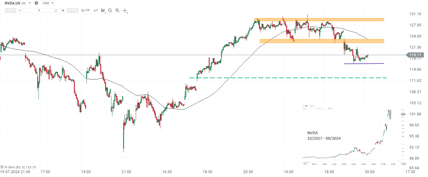 Quelle: XTB xStation5 NVDA m30 Chart (19. Juli 2024 bis 03. September 2024). Screenshot erstellt am 03. September 2024, 13:15 Uhr (MESZ)