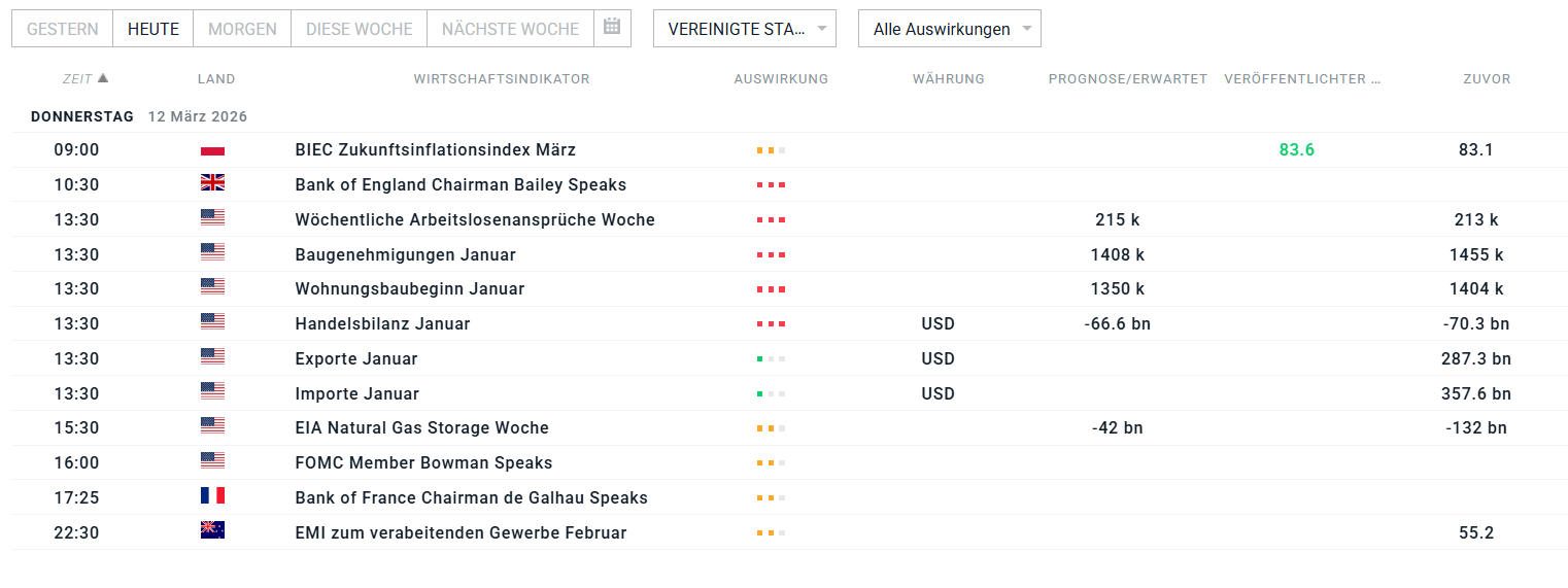 Wirtschaftskalender: US-Verbraucherpreisindex als wichtigste Veröffentlichung 🔎