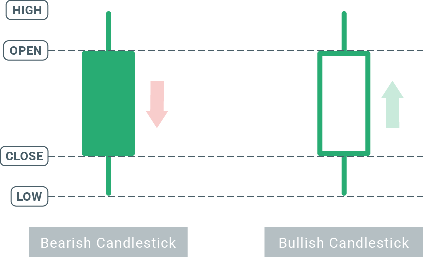 Im Vergleich zu herkömmlichen Bar-Charts sehen viele Händler Candlestick-Charts als optisch ansprechender und leichter zu interpretieren. Jeder Candlestick bietet ein einfach zu interpretierendes Bild von einer Preisaktion. Der Händler kann die Beziehung zwischen Eröffnung und Schluss sowie Hoch und Tief sofort vergleichen. Die Beziehung zwischen Eröffnung und Schluss wird als wichtige Information gesehen und bildet das Wesen der Candlesticks.