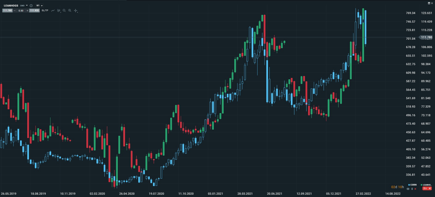 ● Inflationsschutz - aufgrund der steigenden Inflation sind die Lebensmittelpreise in letzter Zeit stark angestiegen, und es wird erwartet, dass diese Tendenz anhalten wird. Daher wird die Anlage in mageres Schweinefleisch von einigen Händlern als Absicherung gegen den Kaufkraftverlust genutzt.