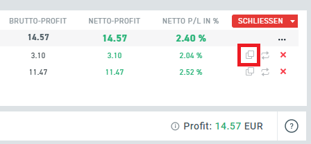 Jede offene Position kann durch einen Klick auf das Symbol "Position duplizieren" entsprechend dupliziert werden: