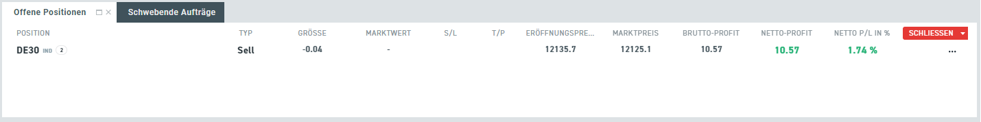 In der ersten Registerkarte "Offene Positionen" können Sie alle Details zu Ihren offenen Transaktionen einsehen.