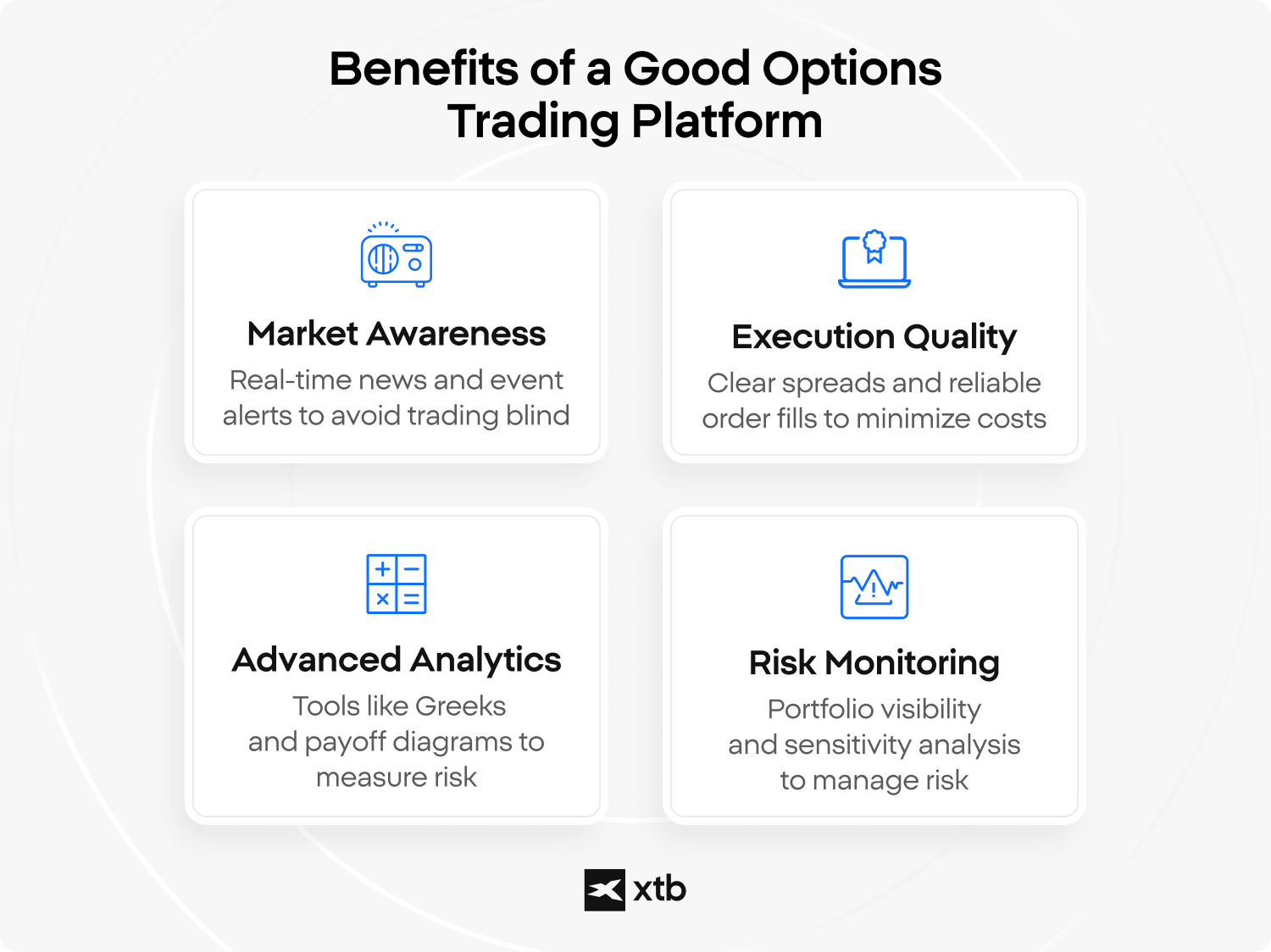 - Options tools matter more than aesthetics: Greeks, options chains, payoff diagrams, and risk simulators improve decision quality.