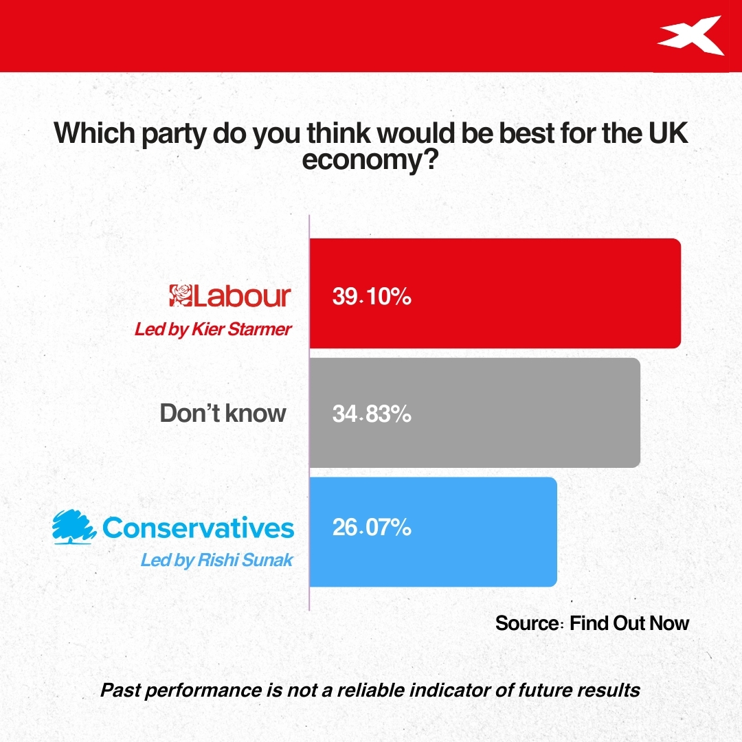 XTB UK Managing Director Joshua Raymond said: “We were shocked by how strong the pro-Labour feeling is amongst investors," "While a lot of people remain undecided on some questions, the overwhelming view is that Labour would be a better custodian of the economy than the Tories."