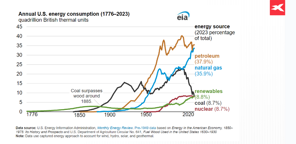 However, we would point out that as demand for gas in the EU dwindles, it is an important part of the energy mix for the US, and has grown rapidly in recent years. It is also outperforming renewable energy, which has seen demand plummet in the same time period, as you can see in the chart below.
